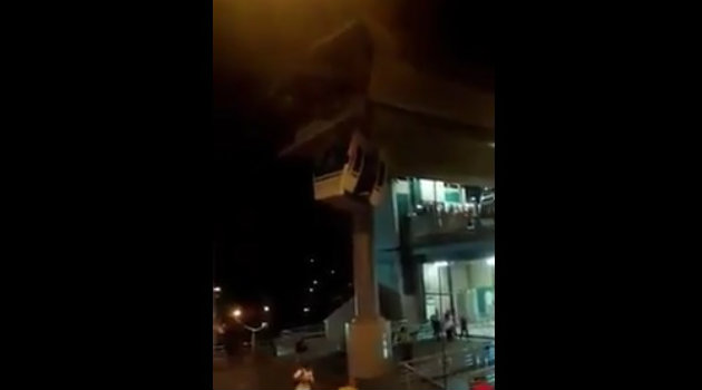 En video quedó registrado el momento en que una cabina de la línea K del Metrocable se chocó contra una estación Popular, en la noche de este sábado, 18 de febrero.