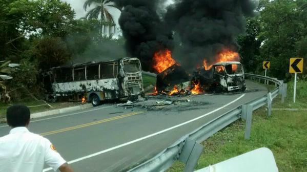 De acuerdo con información de las autoridades de Mutatá, el hecho se presentó en el kilómetro 76, sector Taparales, de la vía que comunica a los municipios de Dabeiba y Mutatá, Urabá antioqueño. Allí cuatro carros: dos busetas, un camión y una cama baja, fueron quemados por combatientes del frente 34 de las Farc.